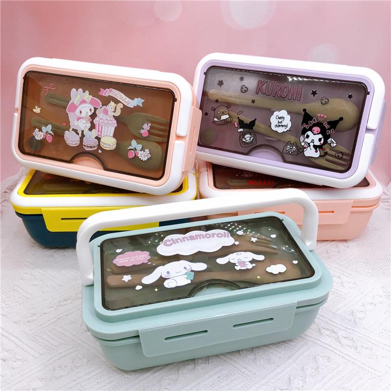 1 pcs Double Layer Lunch Box with Spoon, Portable Lunch Box, Outdoor Travel Accessories, School and Office Staffs kitchen Accessories