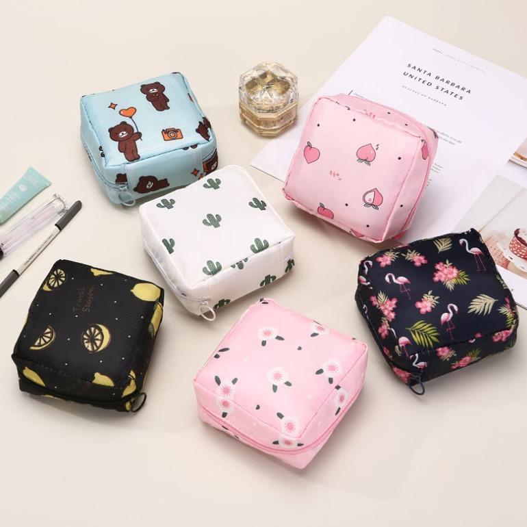 1pc Chic Cartoon Tampon or Cosmetic Storage Bag, Portable and Spacious Sanitary Napkin Organizer , Ideal for Travel